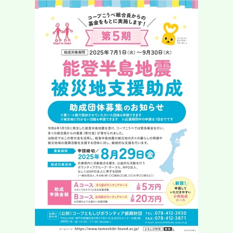 (公財)コープともしびボランティア振興財団では、市民がお互いに支え合い、安心して暮らせることを願い、地域に根ざした活動をしているボランティア団体(個人)を応援する助成を行っています。