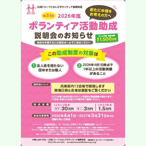 ▶詳細は、ひょうごコミュニティ財団HP 助成プログラム をご覧ください。