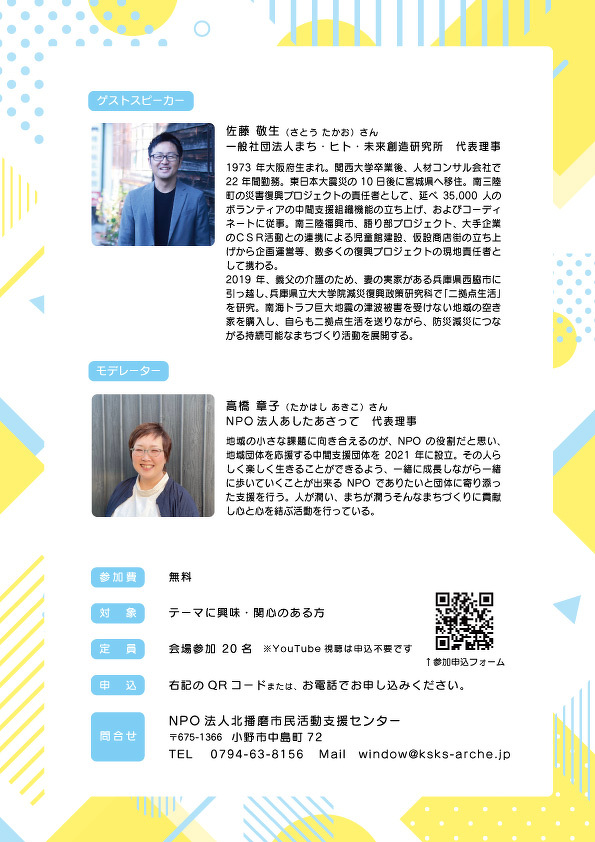 北播磨地域で活動するNPOが地域課題やその取り組みについてトークセッションを行います。