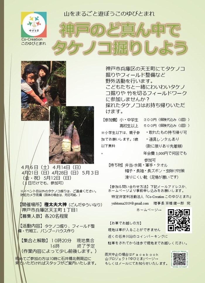 こどもたちと一緒にわいわいタケノコ掘りや 竹を切るフィールドワークに参加しませんか?
