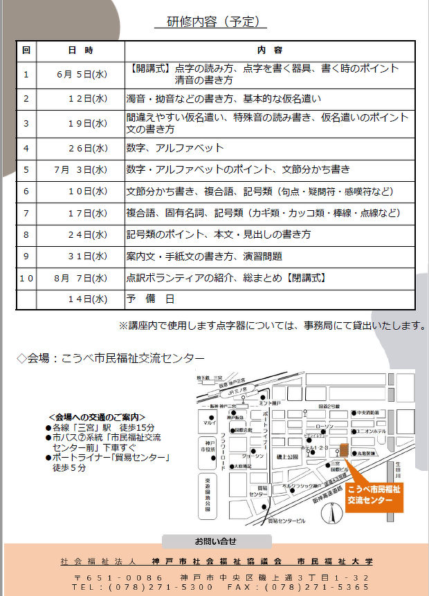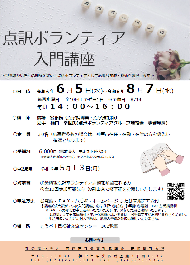 視覚障がい者への理解を深め、点訳ボランティアとして必要な知識・技術を習得する講座です!