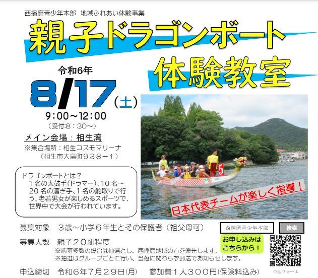 応募方法:西播磨青少年本部ホームページからフォームに移動し、必要事項を記入して送信してください。