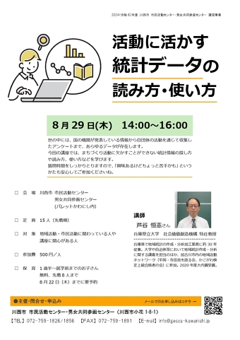 今回の講座では、まちづくり活動に欠かすことができない統計情報の探し方や読み方、使い方などを学びます。