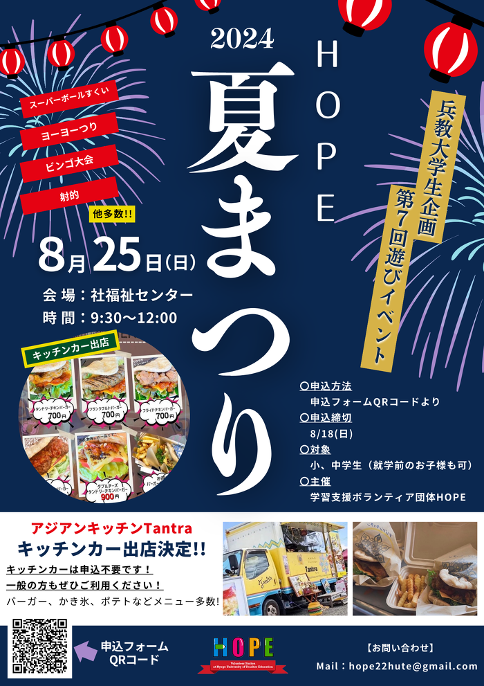 HOPE遊びコース、第7回遊びイベントは"HOPE夏まつり"と題し、子ども達と大学生スタッフみんなで夏休み最後に最高の思い出を作ることができるようなイベントを企画しました!