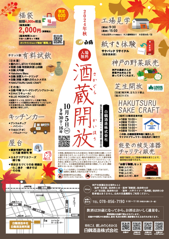 白鶴酒造株式会社(本社:神戸市)は、10月5(土)に「酒蔵開放」を開催します。
