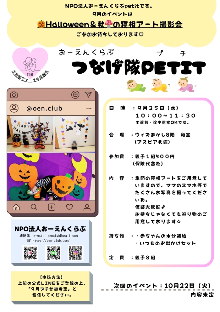 「ハロウィン&秋の寝相アート」撮影会を開催します。