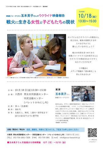 戦火の市民を見つめてきた映像ジャーナリスト玉本英子さんにウクライナの現状をわかりやすく伝えていただきます。