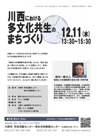 この講座では、その活動から事例や成果をご紹介いただき、日本語を学ぶ場を通じた、互いに尊重しあうまちづくりについて、みんなで一緒に考えていきます