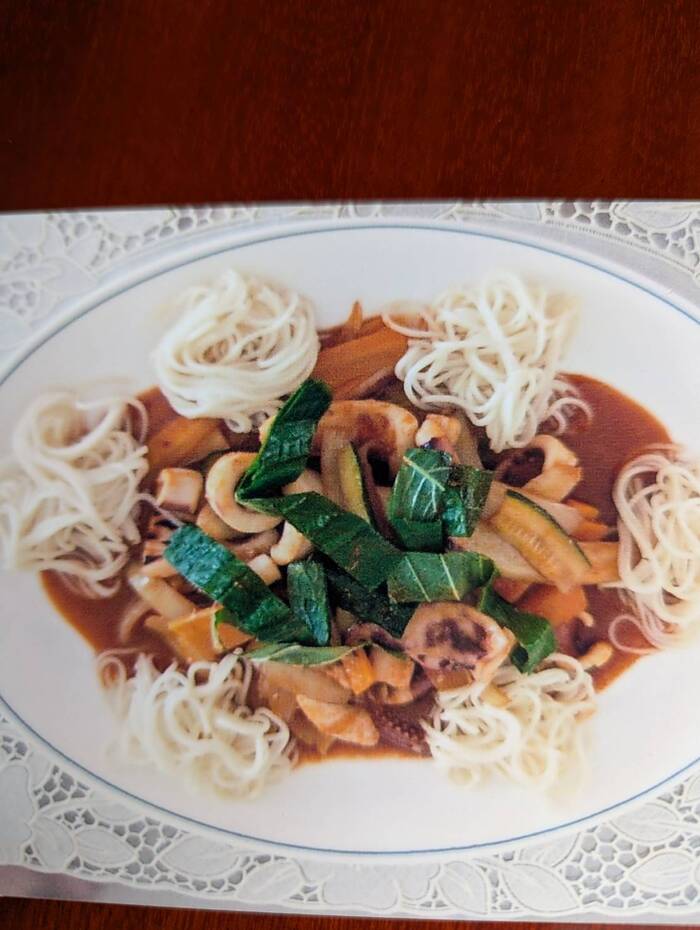 7月5日のメニューは「素麺添えいか炒め」「五穀米詰かぼちゃの蒸し物」