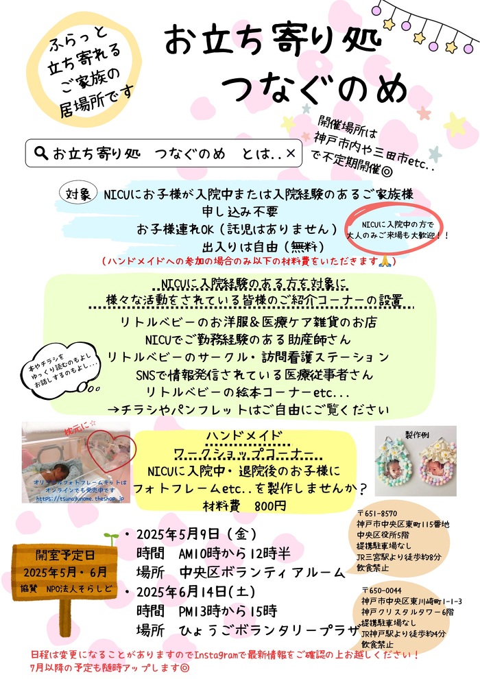 NICU(新生児集中治療室)に入院中または入院経験のあるお子様のご家族様対象☆【NICUにお子様が入院中の方も大歓迎】