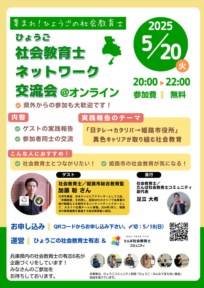 【参加者募集】5/20開催 ひょうご社会教育士ネットワーク交流会@オンライン