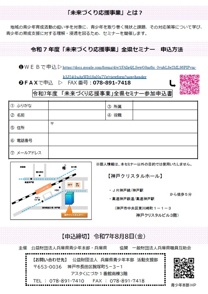 | 団体名称 | 公益財団法人 兵庫県青少年本部 |