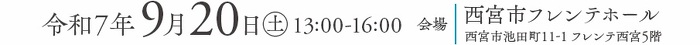 〇令和7年9月20日(土)13:00~16:00/西宮フレンテホール( 西宮市池田町11-1 フレンテ西宮5階)