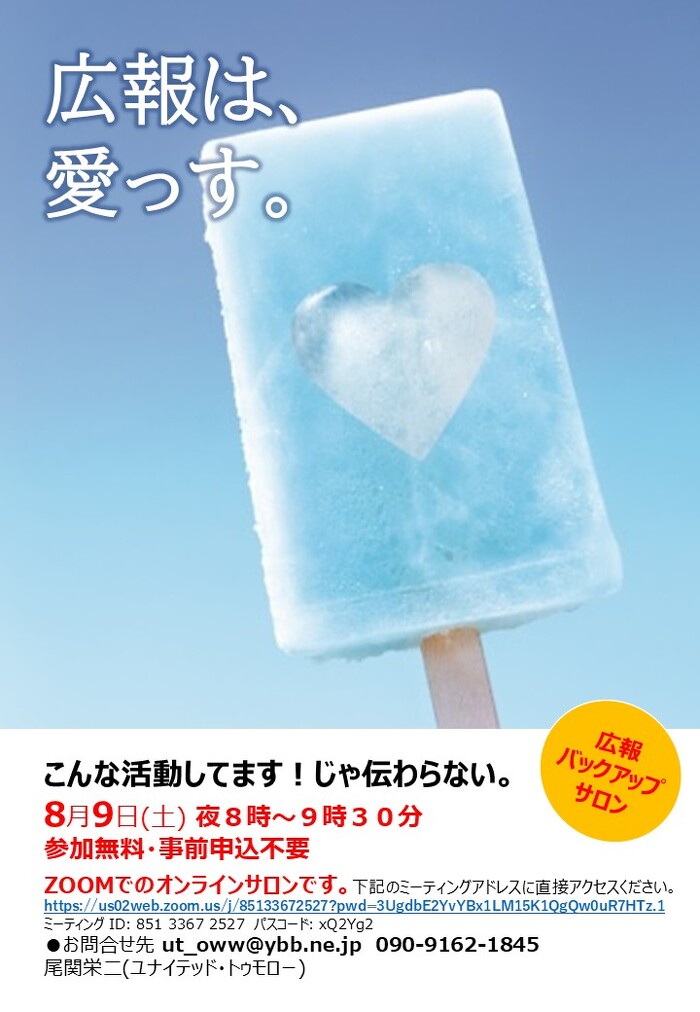 ミーティング ID: 851 3367 2527 パスコード: xQ2Yg2