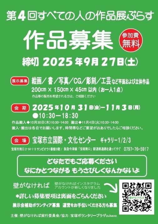 #アート #アールブリュット #創作 #表現 #作品展示 #造形 #絵画 #書 #写真 #CG #彫刻 #工芸 #ボランティア #つながる #居場所 #壁がなければ #宝塚 #宝塚市立国際文化センター #zukavo