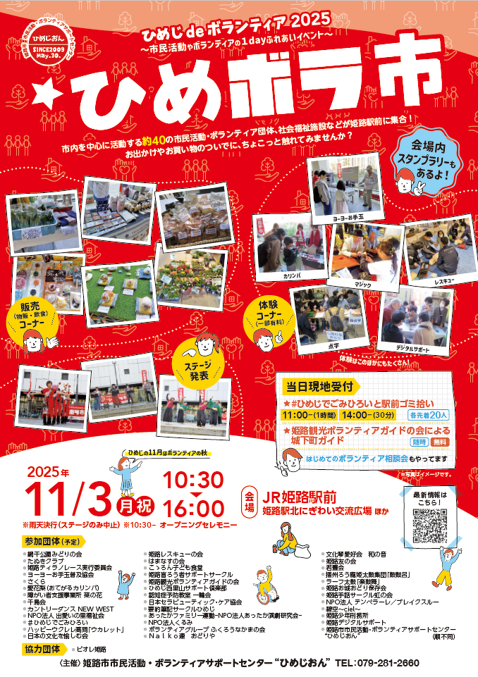 姫路市内を中心に活動する市民活動・ボランティア団体、社会福祉施設などが日頃の活動内容に即した、体験コーナー、販売コーナー、ステージ発表などを通じて、市民の皆さんと触れ合う1dayふれあいイベントです。
