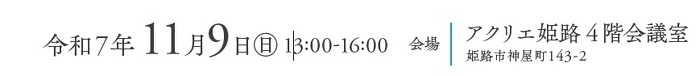 〇令和7年11月9日(日)13:00~16:00/アクリエ姫路 4階会議室( 姫路市神屋町143-2)