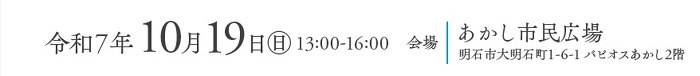 〇令和7年10月19日(日)13:00~16:00/あかし市民広場(明石市大明石町1-6-1 パピオスあかし2階)