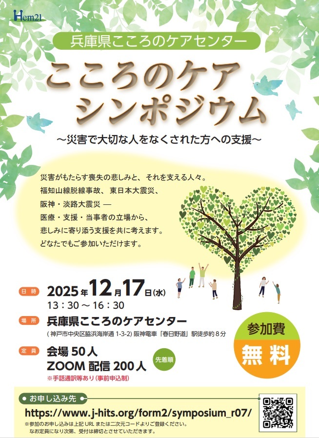 ■主  催:公益財団法人ひょうご震災記念21世紀研究機構 兵庫県こころのケアセンター