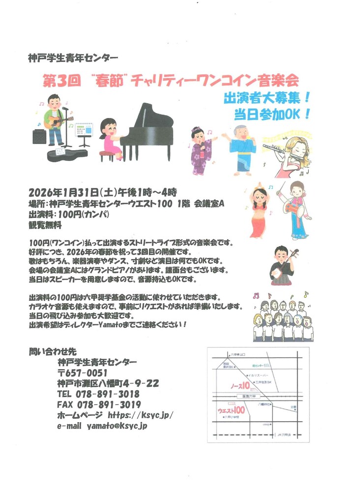 出演料の100円は六甲奨学基金の活動に使わせていただきます。