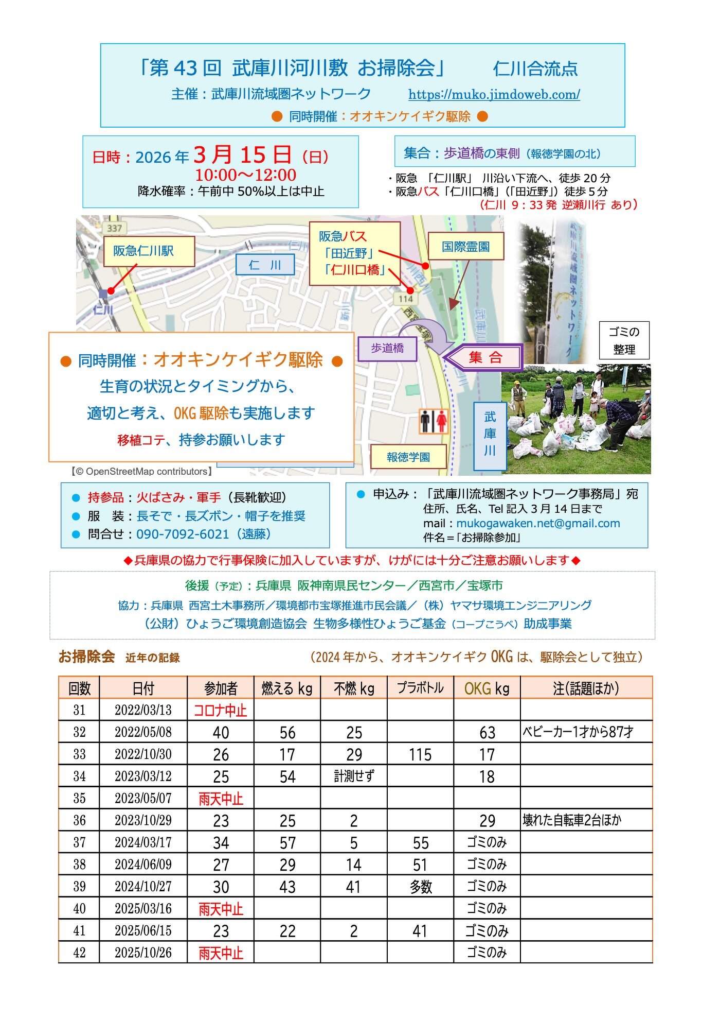 第43回武庫川河川敷お掃除会チラシ