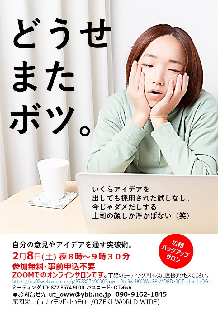 ZOOMでのオンラインサロンです。下記のミーティングアドレスに直接アクセスください。