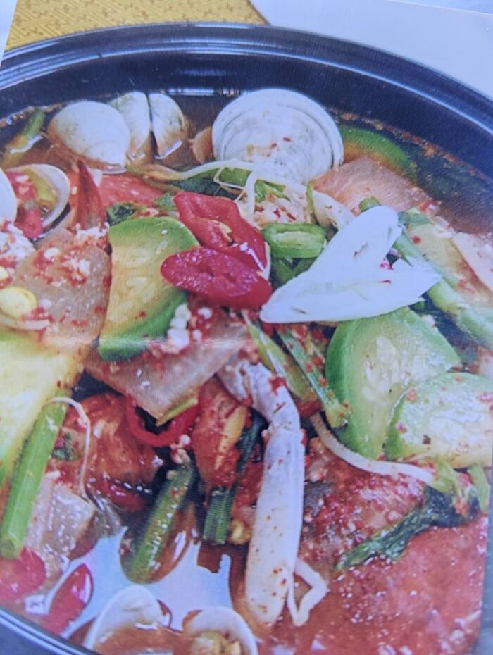 今月のメニューは「海鮮チョンゴル」と「ゴマ油風味の大根ナムル」です。