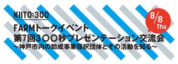 デザイン・クリエイティブセンター神戸(KIITO)では、社会貢献活動、地域活動を支援する「KIITO:300 FARM」の取り組みとして、トークイベント第7回「300秒プレゼンテーション交流会」を開催します。