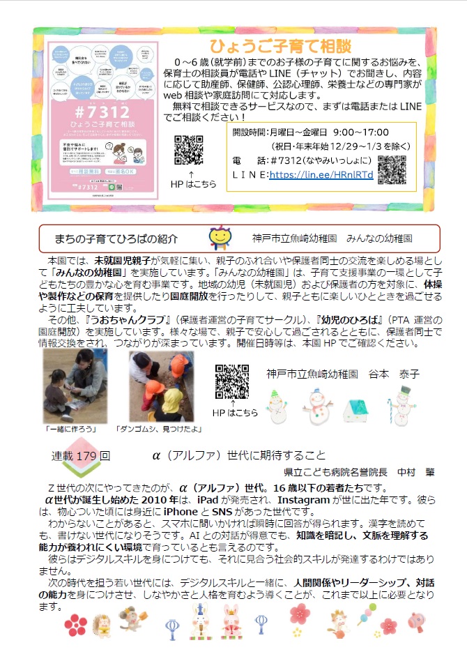兵庫県の子育て支援事業の紹介や、子育て応援ネット・まちの子育てひろばの活動の様子、こどもの健康コラムなどを掲載した「地域子育てネットワークだより」を偶数月に発行しています。
