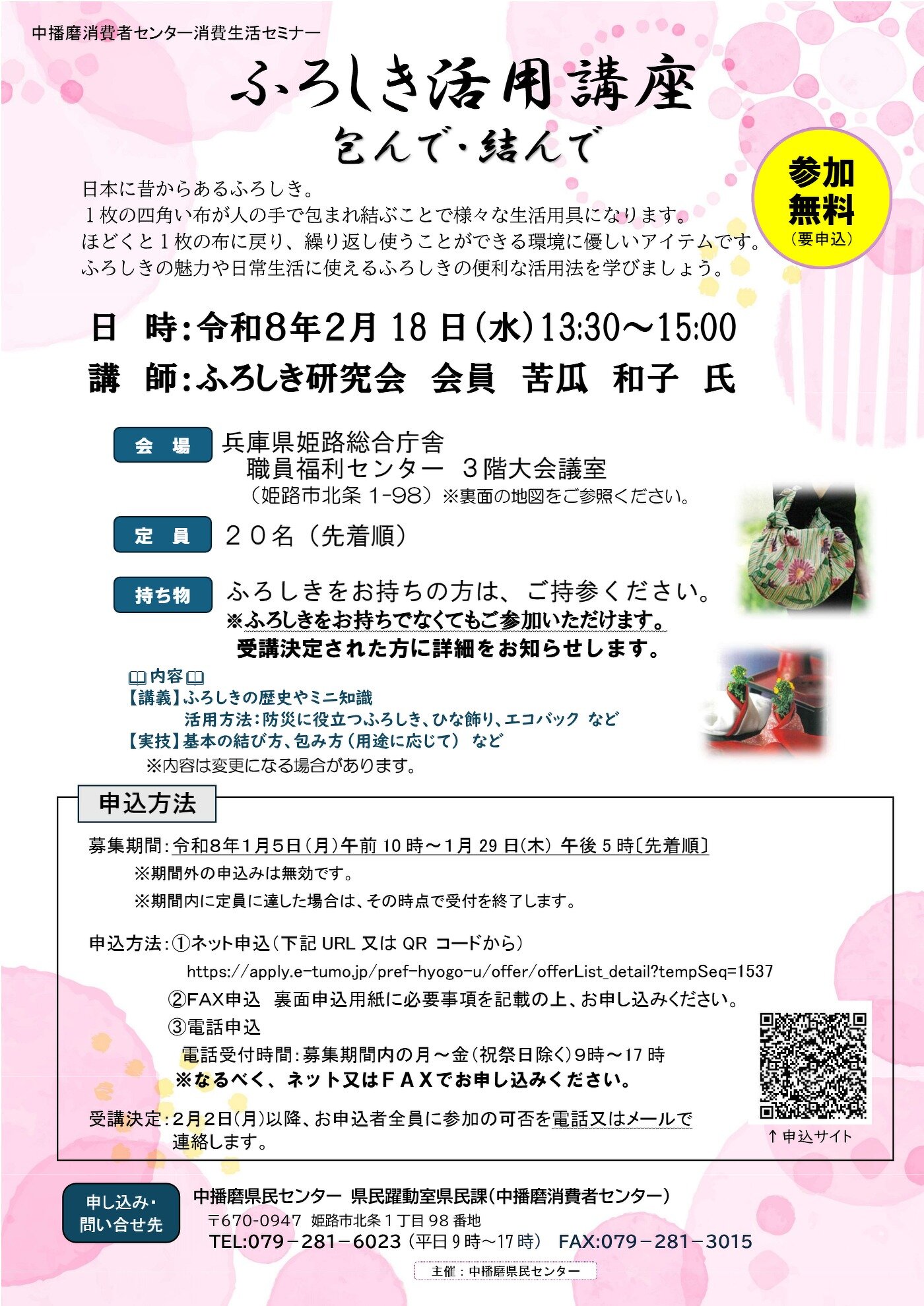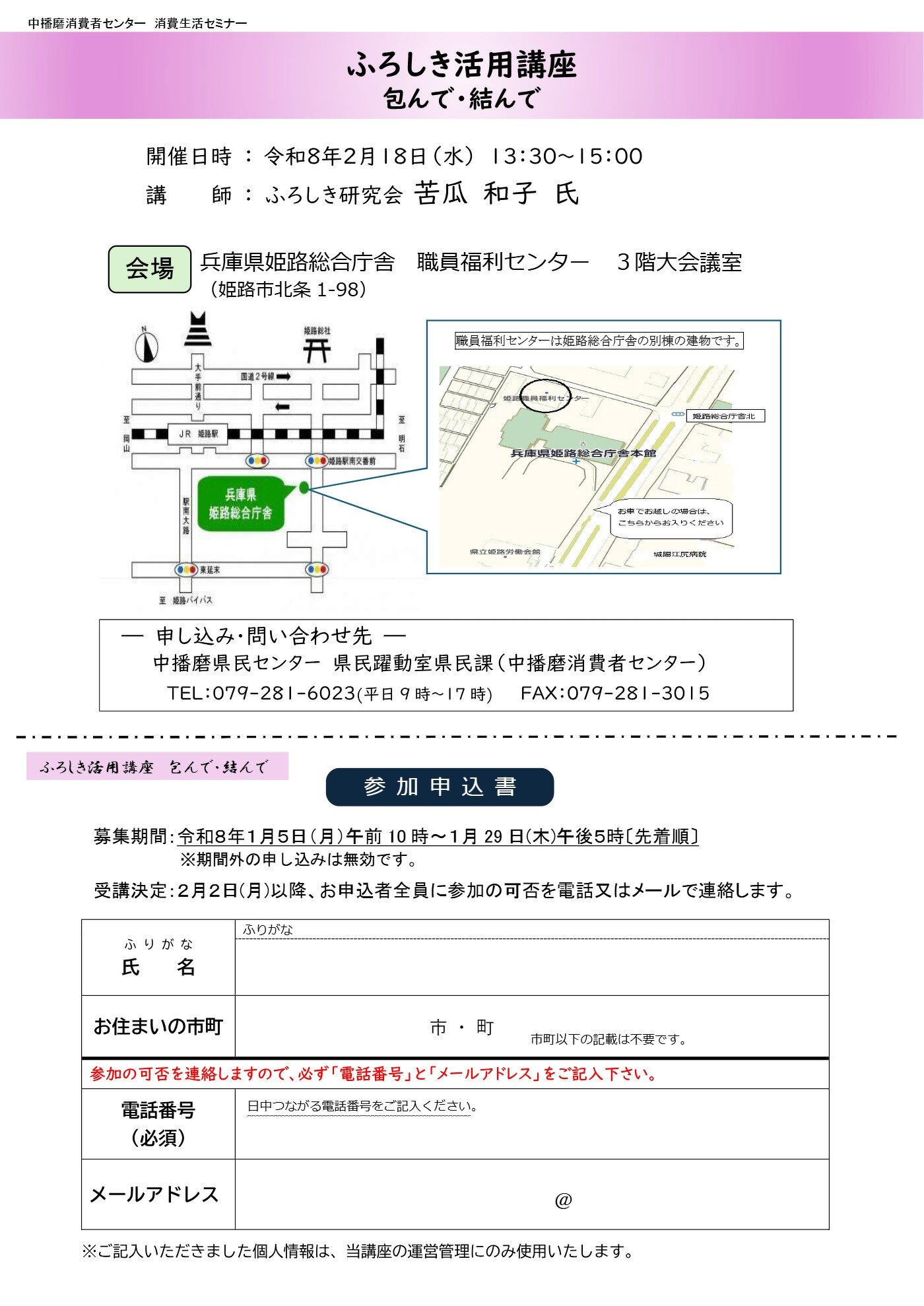 持ち物 ふろしきをお持ちの方はご持参ください。