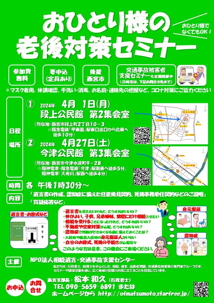 4/1・27 おひとり様の老後対策セミナー(西宮市)