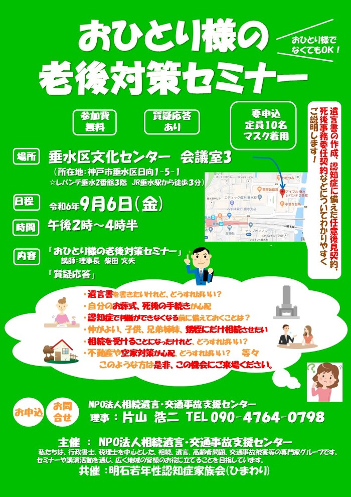 | 団体名称 | 特定非営利活動法人 相続遺言・交通事故支援センター |