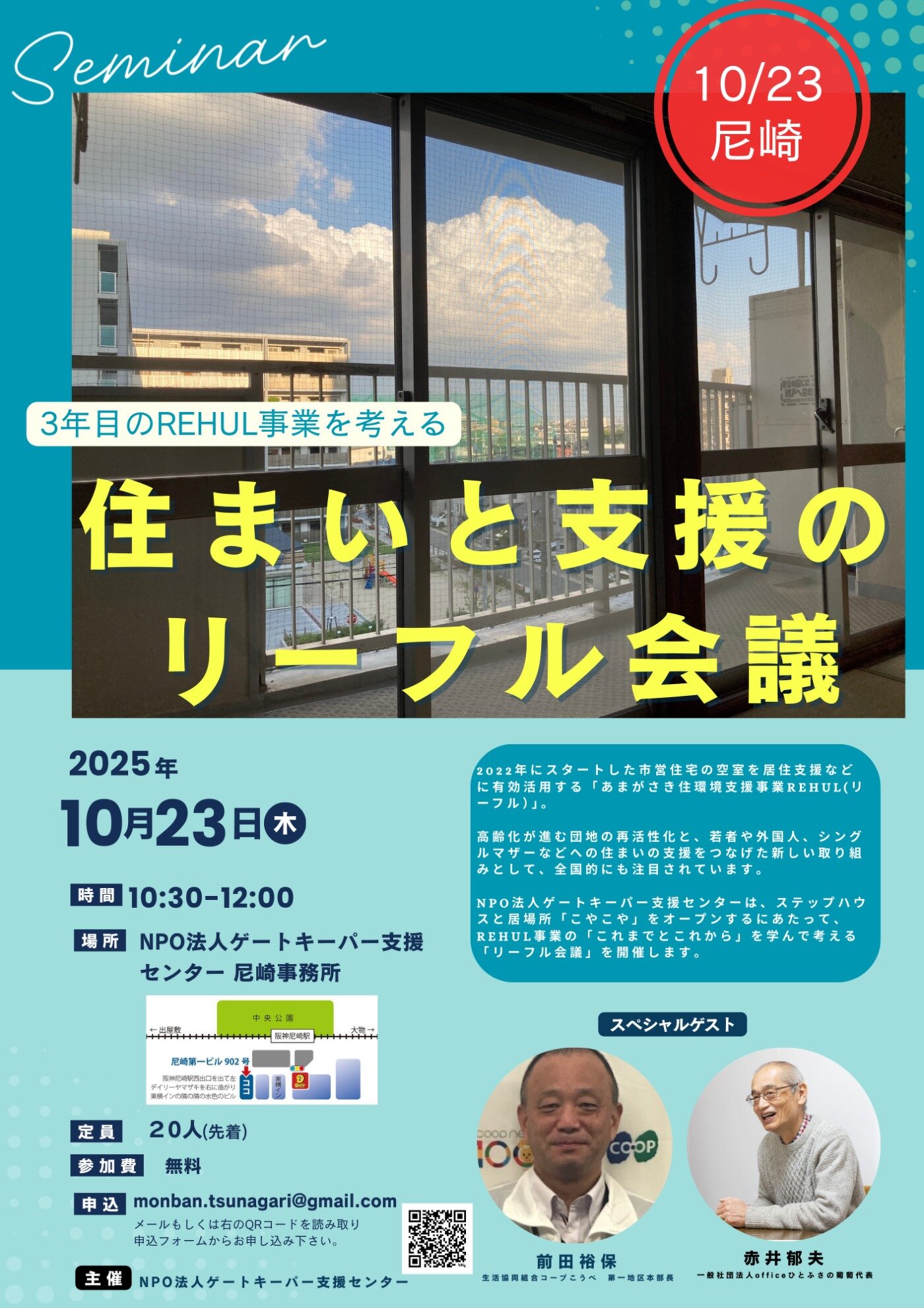 NPO法人ゲートキーパー支援センターは、ステップハウスと居場所「こやこや」をオープンするにあたって、REHUL事業の「これまでとこれから」を学んで考える「リーフル会議」を開催します。