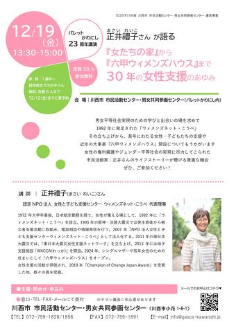 講 師|正井禮子さん/認定NPO法人女性とこども支援センター ウィメンズネットこうべ代表理事