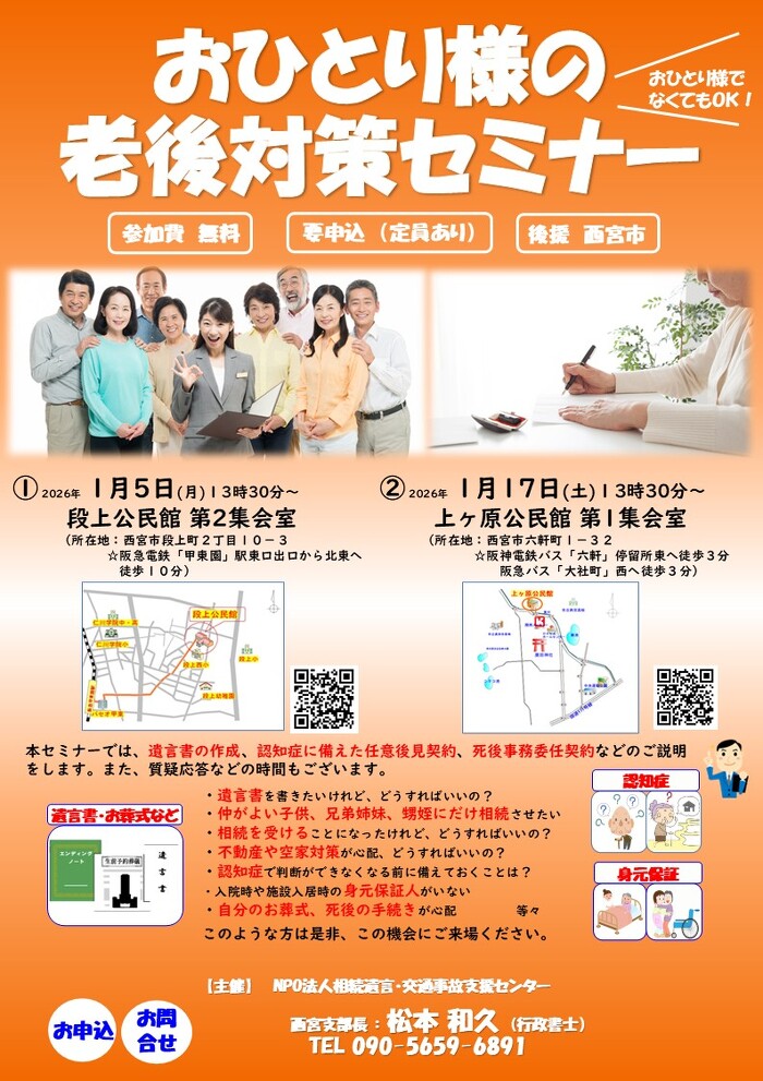1/5・17 おひとり様の老後対策セミナー(西宮市)