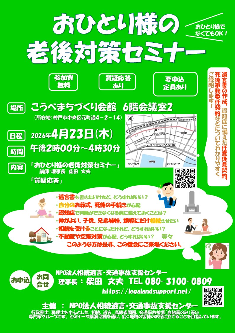令和8年4月23日(木)こうべまちづくり会館 午後2時~4時半