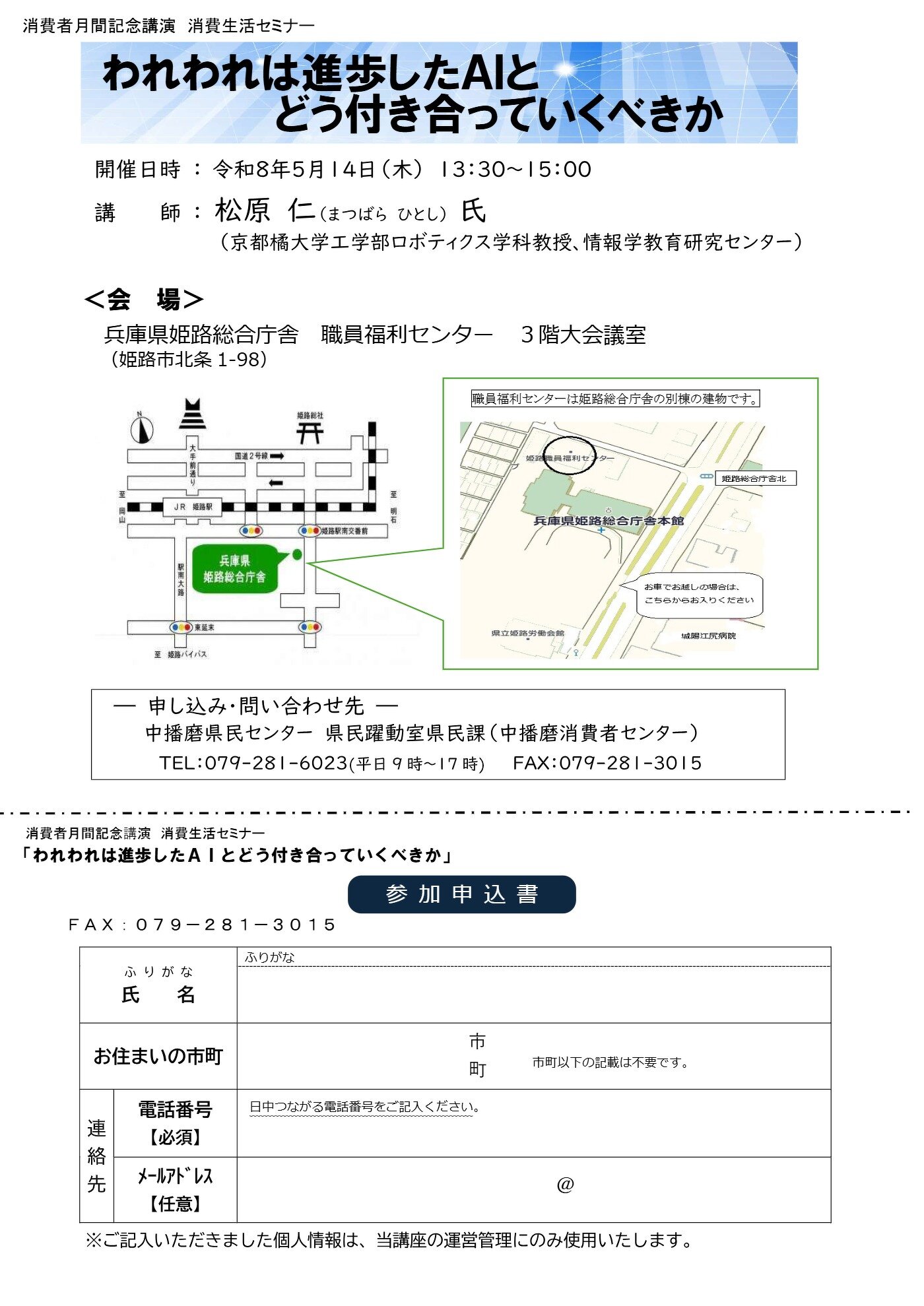 場 所 兵庫県姫路総合庁舎 職員福利センター3階大会議室