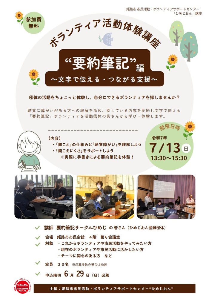 姫路市 市民活動・ボランティアサポートセンター“ひめじおん”「ボランティア活動体験講座」係