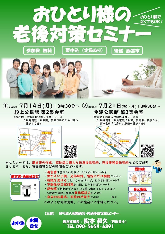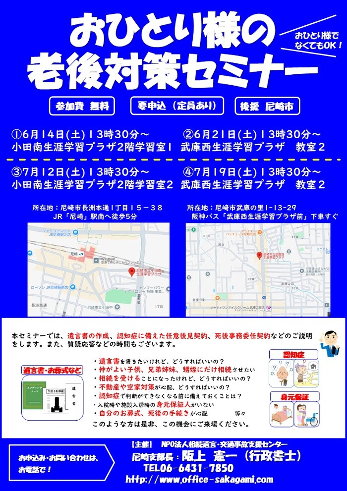 申込み連絡先: NPO法人相続遺言・交通事故支援センター