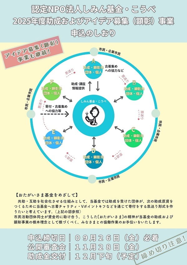 市民活動団体同志が資金的に助け合う、こうした「おたがいさま」の精神が当基金の助成事業の根本理念として根づくべく、