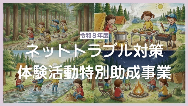 ◎事業内容 日常生活でネット利用を見直したい県内在住の青少年を対象に、ネット依存対策を組み込んだ1泊以上のキャンプ等自然体験活動を含む事業であること