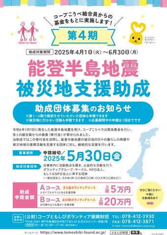 ▶詳細は、こちら コープともしびボランティア振興財団ホームぺージ をご覧ください。