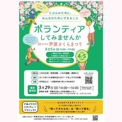 【第38回芦屋さくらまつり ボランティア募集概要】