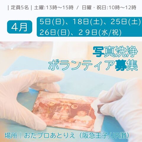 【4月・複数日開催】写真洗浄ボランティア@王子公園/灘【被災地支援】