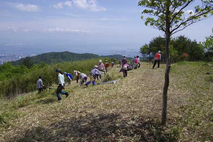 東お多福山草原の植物の多様性を保つためのササ刈りを実施します。