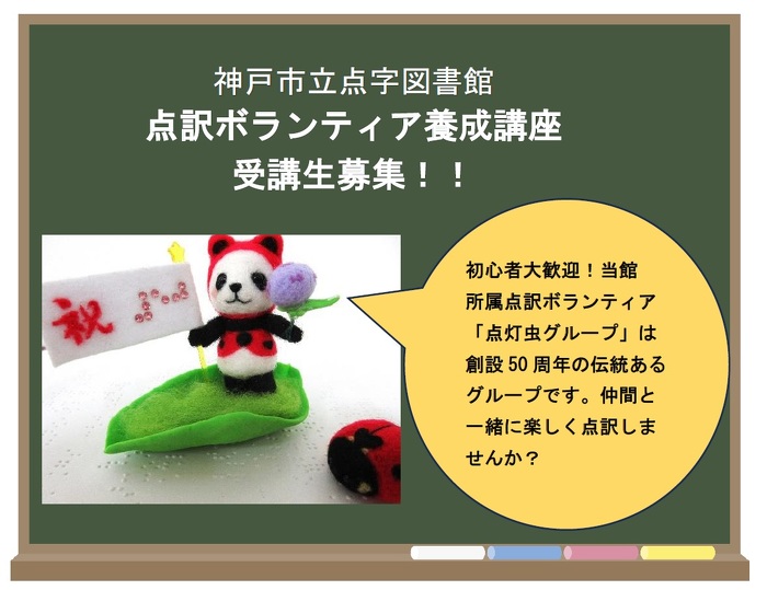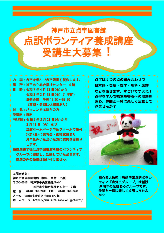 問い合わせ先 : 神戸市立点字図書館(担当 中村・比嘉)