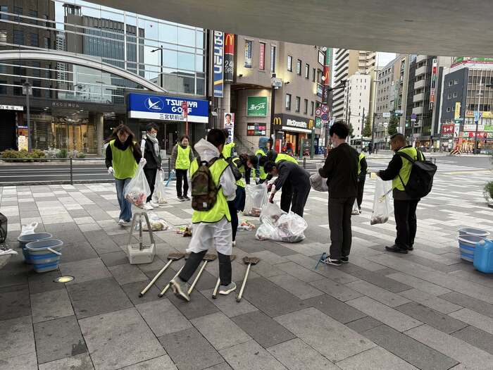 ホウキ、チリトリ、トング、ゴミ袋、ビブスは準備します。