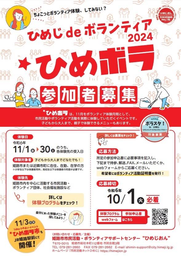 “ひめじおん”で昨年度からスタートした「ひめじdeボランティア」。その一企画である「ひめボラ」の体験参加者を募集します。