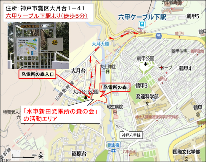 六甲川水車新田小水力発電設備設置エリアの森林を里山林として維持・管理することで