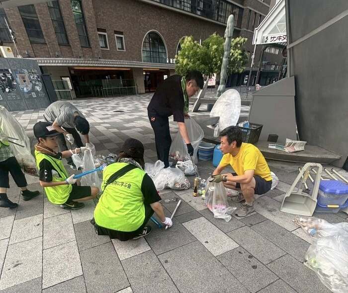 清掃活動:6時 自己紹介、説明、ゴミ拾い、側溝の掃除